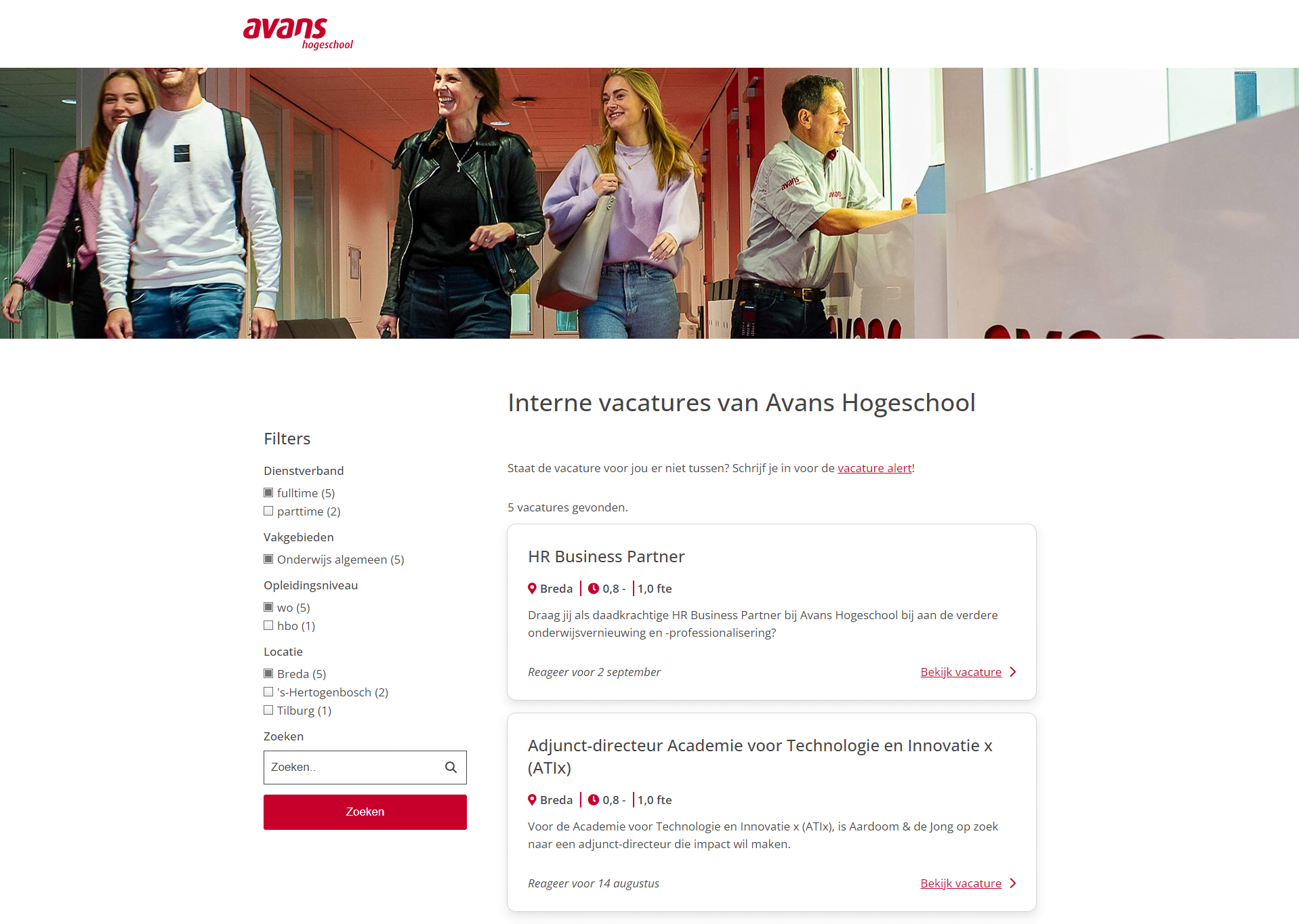 Expand your reach easily with our direct integrated solutions with Meesterbaan for secondary schools, Werkenbijhogescholen for colleges, and with Academic Transfer for universities. Find the candidates you are looking for via the education job boards.