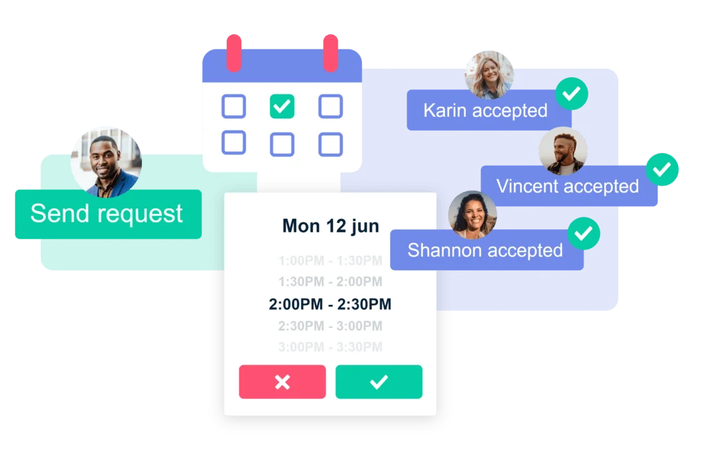 Stuur een interviewverzoek of voorstel voor een sollicitatiegesprek zoals je een Teams-meeting aanmaakt. Vanuit Ubeeo verstuur je uitnodigingen naar kandidaten en interviewers, met één druk op de knop. Of gebruik de realtime-scheduler. Dan plannen kandidaten zelf een tijdslot in waarop ze kunnen.
