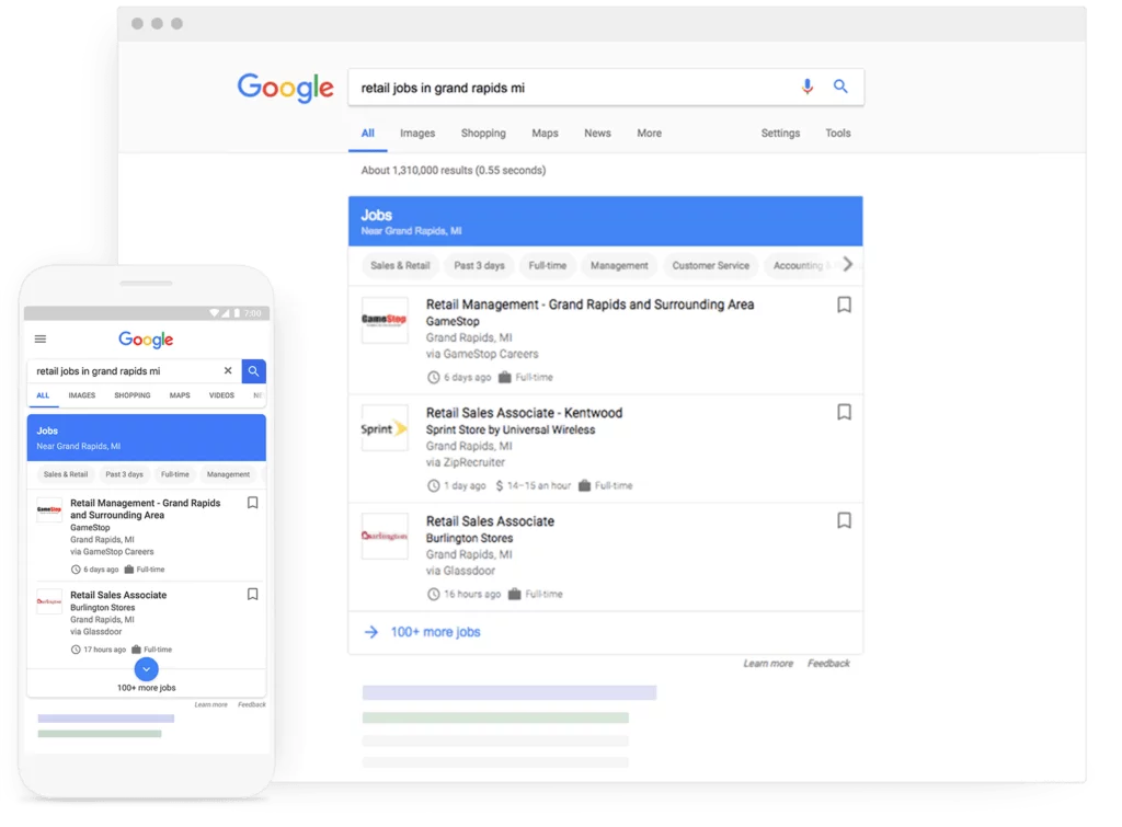 Dat betekent dat Google for Jobs automatisch de benodigde informatie verzamelt, om de vacature te tonen. Wij zorgen voor alle benodigde onderdelen, zodat de vacature bij Google for Jobs dezelfde professionele uitstraling heeft als op de eigen vacature of Werken bij-site.