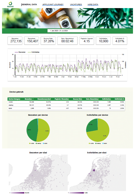 Google Analytics verzamelt alle denkbare informatie over het gedrag van bezoekers op de website. Het Ubeeo ATS verrijkt die data met voortgangsdata van sollicitanten.